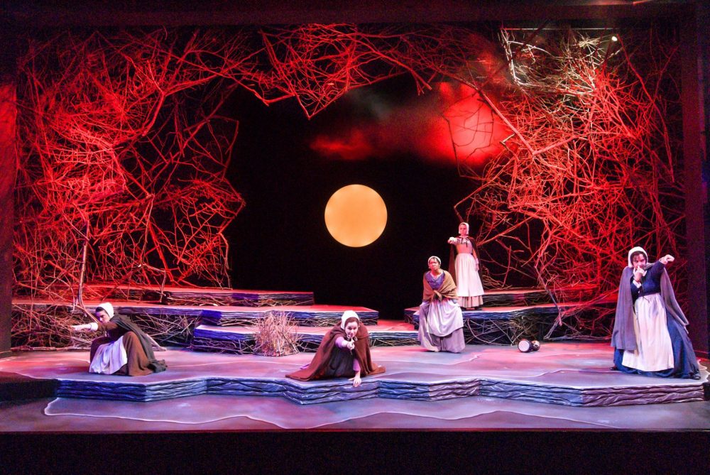 1691.  Abigail Williams, Ann Putnam, Mercy Lewis, Mary Warren, and Betty Paris meet with the slave, Tituba, deep in the dark woods of Puritan New England at night. Denied all outlets for imagination, the girls unite in secret society. When the girls force Tituba to tell their fortunes, they ignite a crucible of events that burns out of control, leading straight to the infamous Salem Witch Trials.
